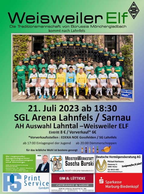 Am Freitag, den 21.07.2023 spielt die Weisweiler Elf um 18.30 Uhr gegen eine AH Auswahl Lahntal. Kader: Kässmann – Anagnostou – el Khattouti – Gaede