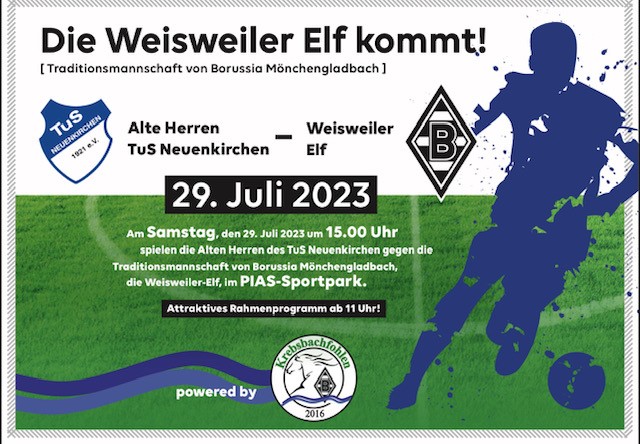 Am Samstag, den 29.07.2023 spielt die Weisweiler Elf um 15.00 Uhr gegen die TUS Neuenkirchen. Kader: Kässmann – Özkaya – el Khattouti – Puhl –