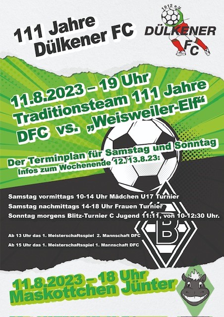 Am Freitag, den 11.08.2023 spielt die Weisweiler Elf um 19.00 Uhr gegen das Traditionsteam 111 Jahre Dülkener FC. Kader: Gerdes – Jung – el Khattouti