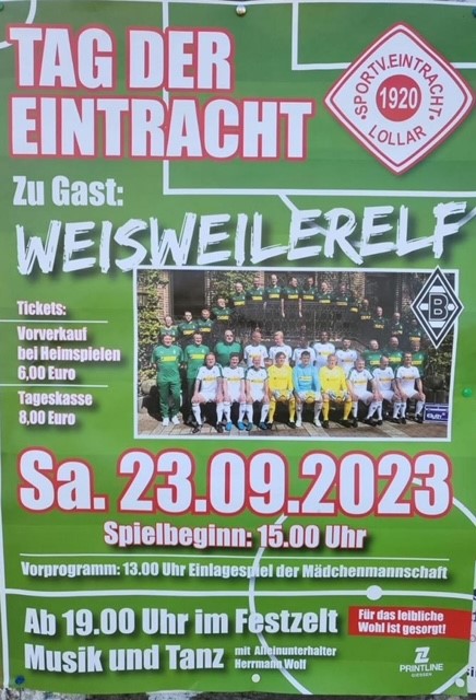 Am Samstag siegte die Weisweiler Elf vor ca. 500 Zuschauern bei SV Eintracht Lollar mit 8-3. Wir bedanken uns für die nette Gastfreundlichkeit. Tore: 3x